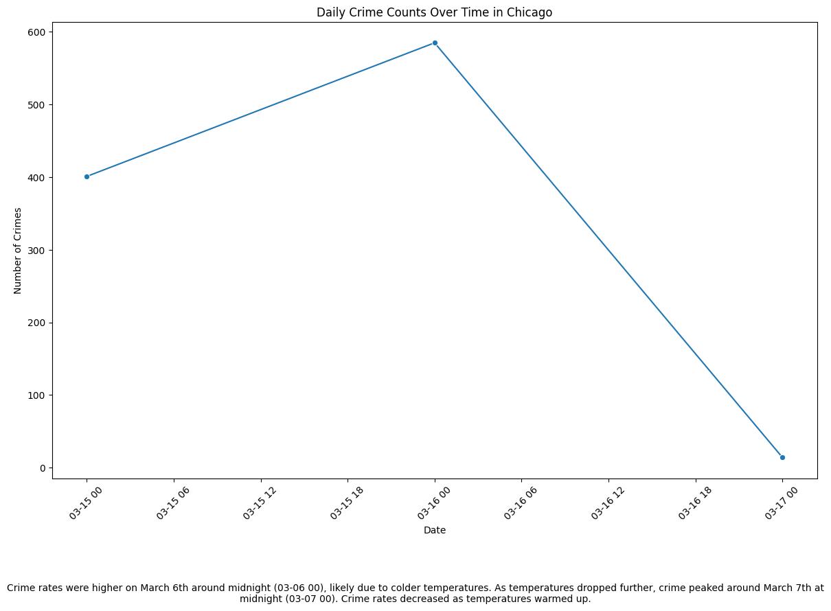 Potential Biases: Crimes may be underreported during extreme weather events, especially severe storms or extreme cold, which could skew results.